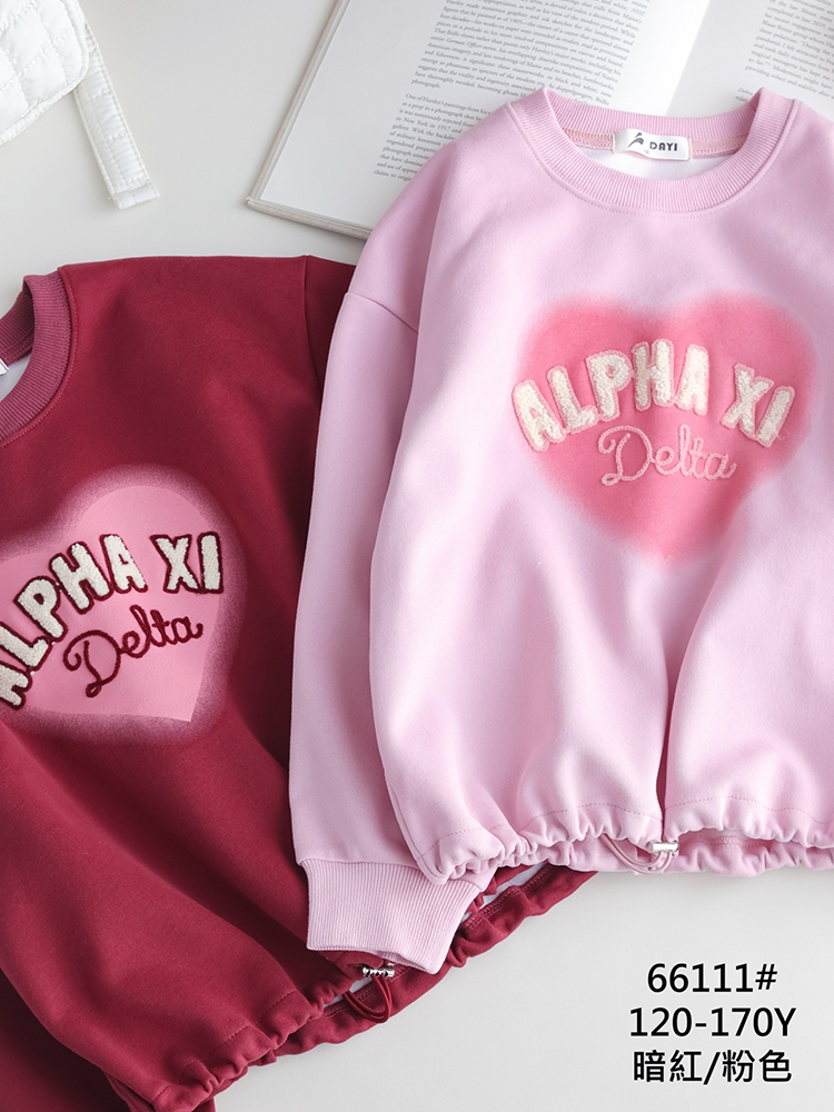 搶先評價 “中大女童 愛心字母長袖棉T 暗紅 120-160碼 [66111] RQ POLO 秋冬童裝 上衣 縮口圓領T恤 聖誕”