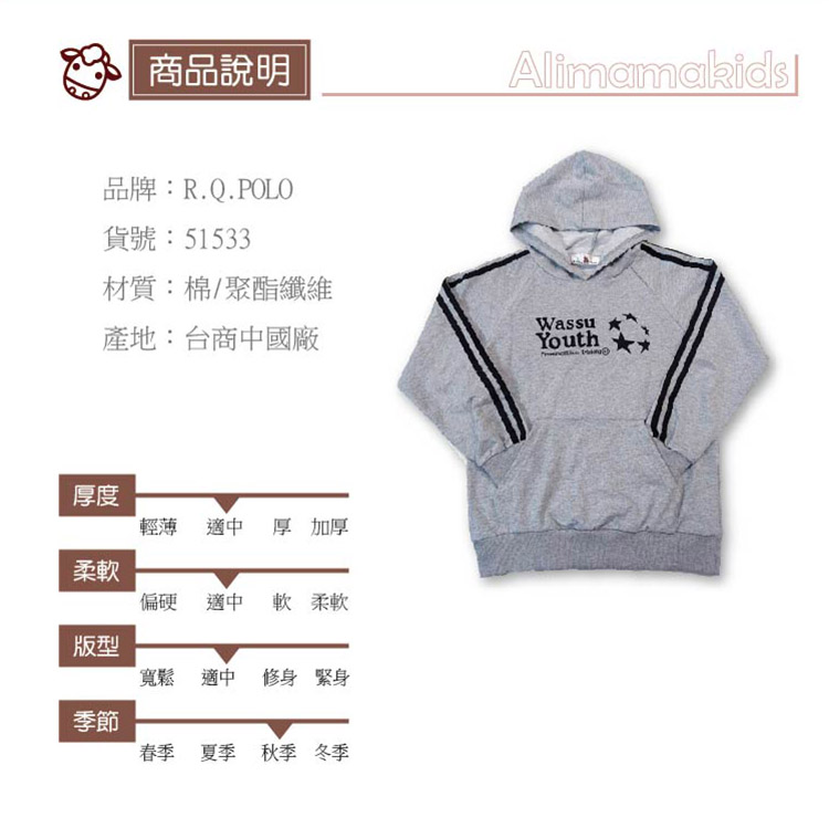 潮流熱銷款,胸前字母星星印刷圖案,前方有口袋設計~男孩喜歡帥氣的將手插進去保暖喔!