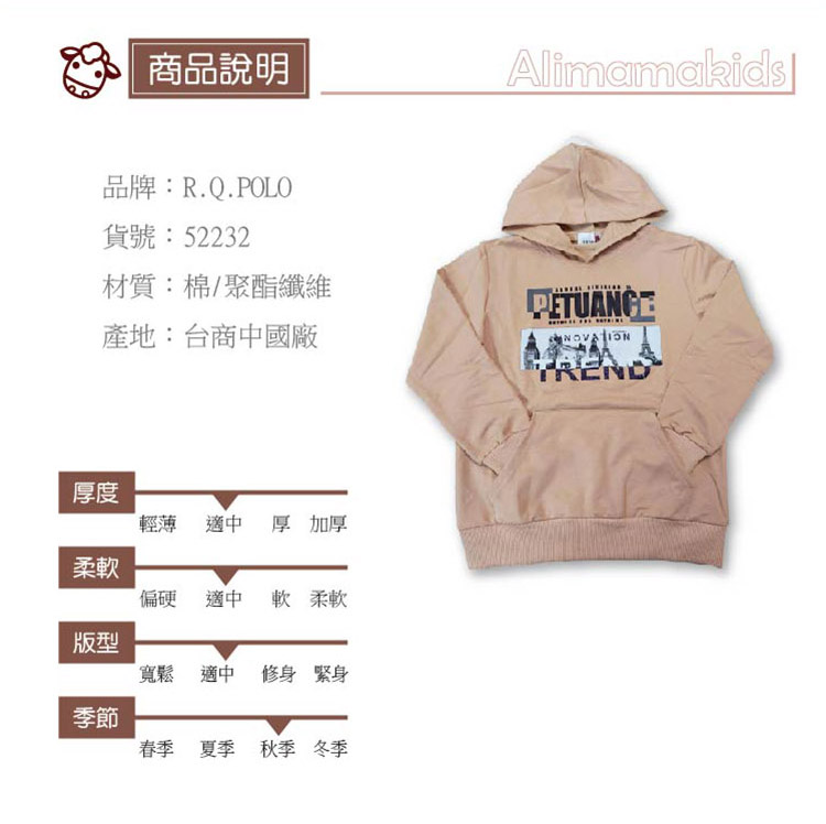 潮流熱銷款,胸前字母鐵塔印刷圖案,前方有口袋設計~男孩喜歡帥氣的將手插進去保暖喔!