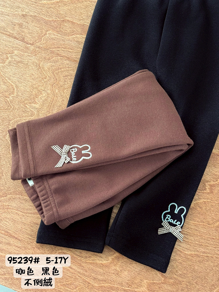刷毛款厚內搭長褲,左邊褲腳有刺繡兔兔圖案搭配立體蝴蝶結點綴!