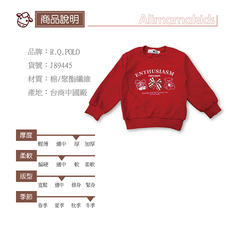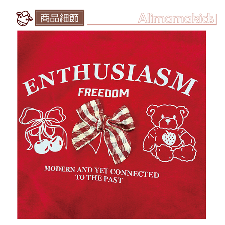 胸前有印刷小熊圖案跟字母~還有立體蝴蝶結點綴,建議翻面清洗,