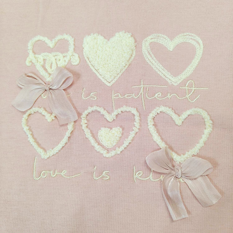 胸前有超浪漫毛線愛心圖案跟立體蝴蝶結,肩膀有做微抓皺設計~很好看唷! 可搭長褲、褲裙~都超好看的!