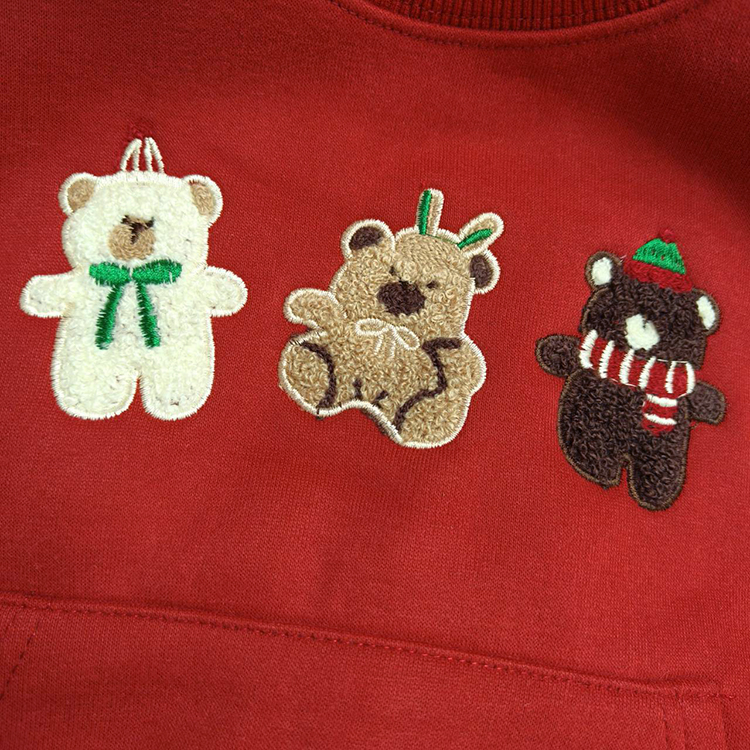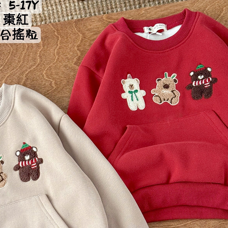 超可愛毛線刺繡小熊圖案,中間還有一隻卡皮巴拉~男女皆可~可搭長褲、褲裙~都超好看喔!