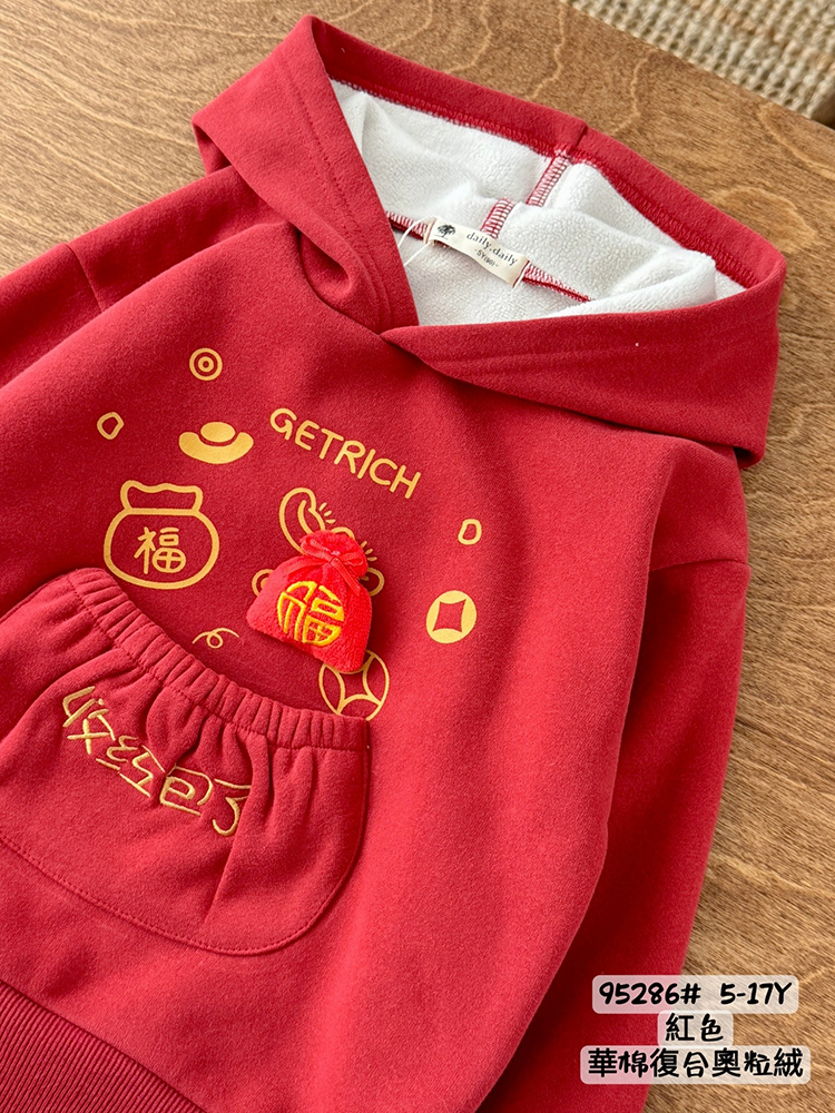 前方印刷刺繡福氣字樣圖案,還有一個口袋~準備收滿滿的紅包囉!!