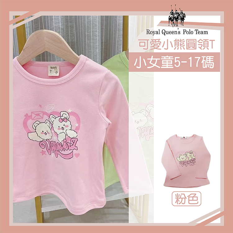 可愛的小熊 粉色圓領T 德絨材質 透氣又保暖,薄刷毛質感有著像羊毛一樣舒服的觸感喔!