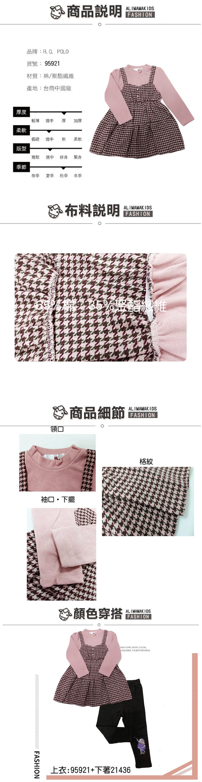 小女童 千鳥格洋裝 連身裙 粉色[95921] R.Q. POLO 小童 秋冬童裝 5-17碼 現貨