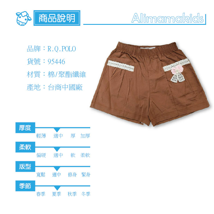 RQ POLO 可愛蕾絲蝴蝶結鬆緊 梭織短褲