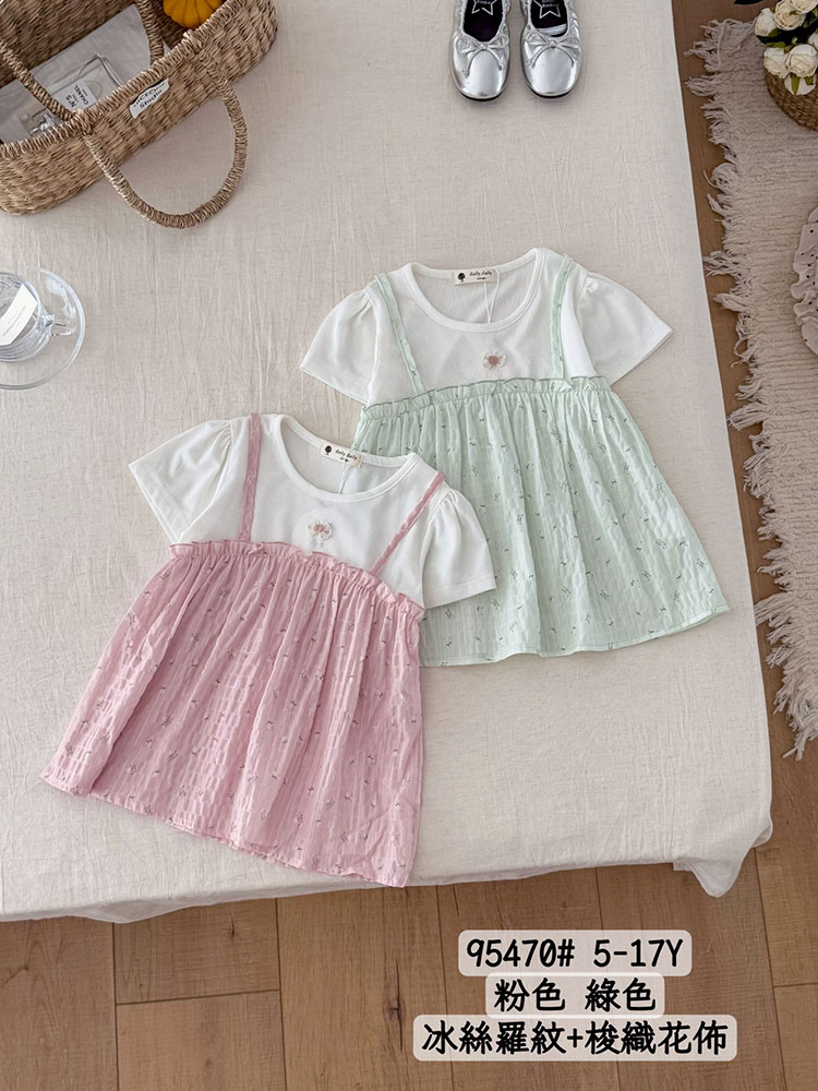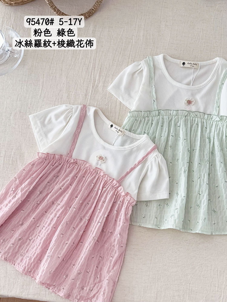 小女童 小清新假兩件 短洋上衣 5-17碼 [95470] RQ POLO 小童 春夏童裝 布料柔軟 內搭褲 短洋裝 小葉子