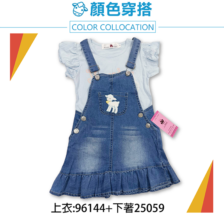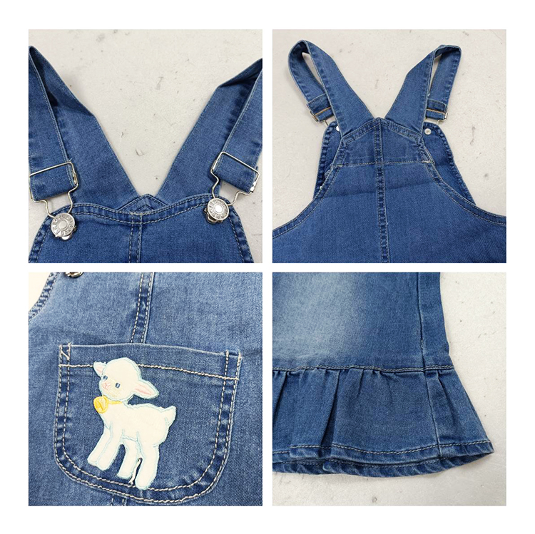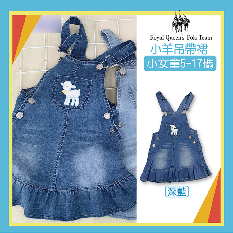 超可愛的小羊牛仔吊帶裙,胸前小綿羊圖案,有一個小口袋,