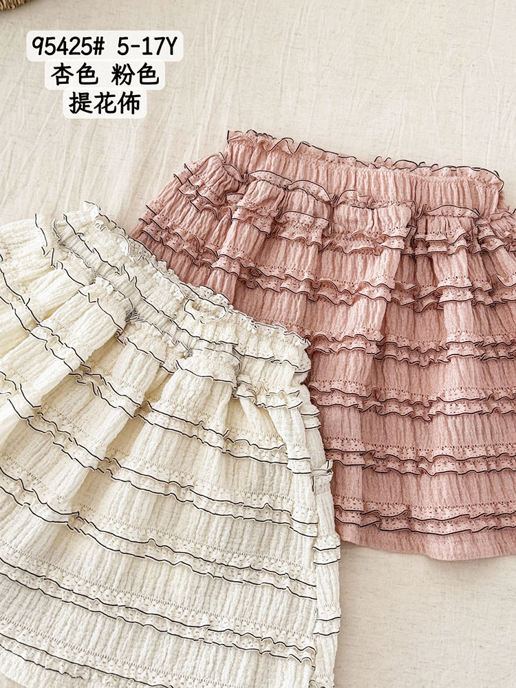 小女童 緹花蕾絲短裙/褲裙(內拼接安全褲) [95425] RQ POLO 小童 5-17碼 春夏童裝 緹花紋波紋泡泡布