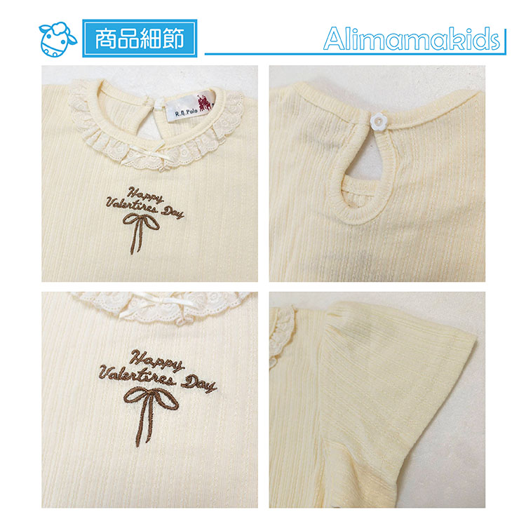 胸前蝴蝶結刺繡的小圖案,領口圓弧剪裁,搭配蕾絲邊,秀氣又浪漫