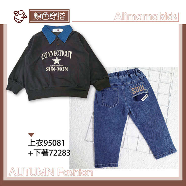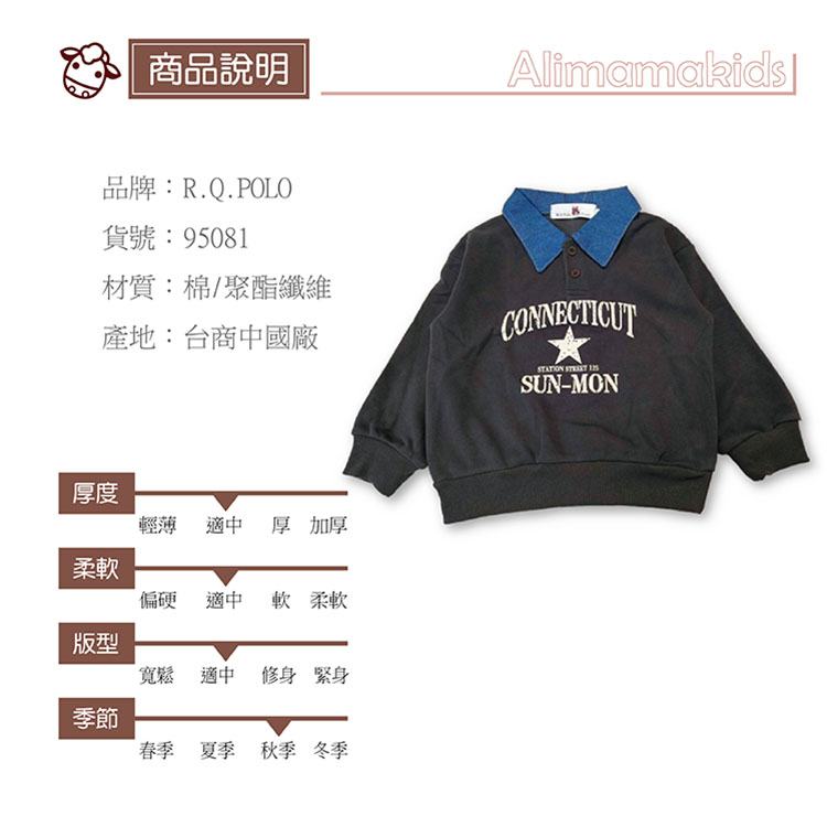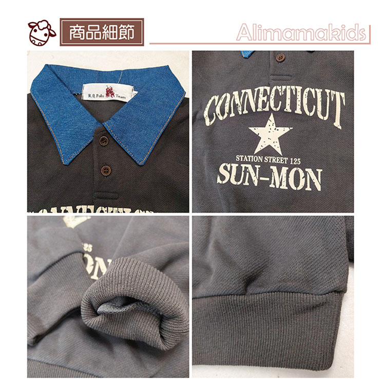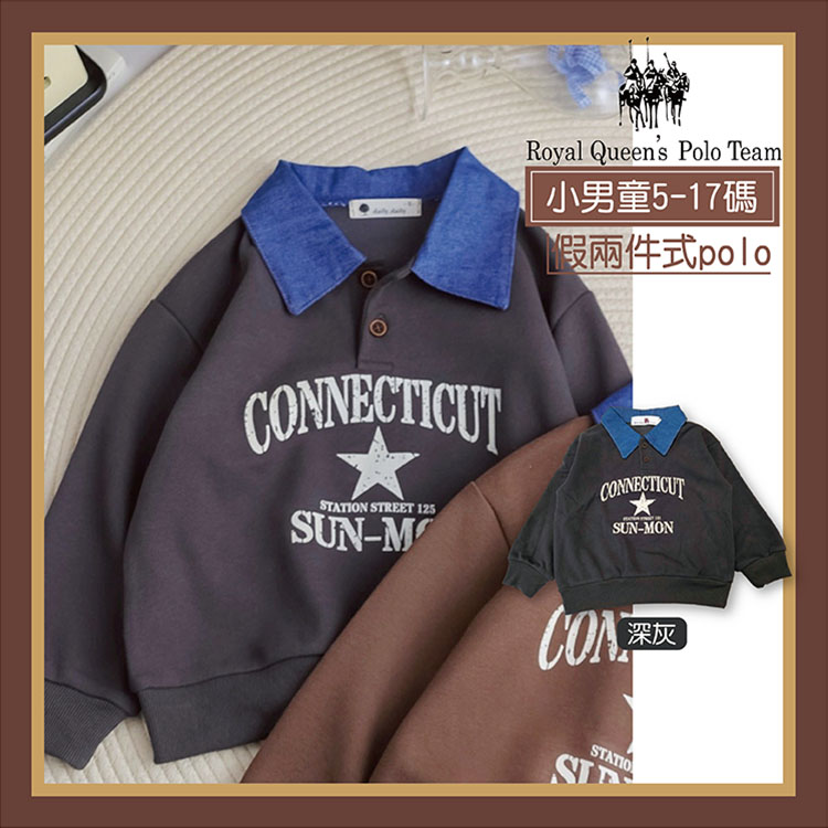 RQ POLO 小男童長袖 假兩件式polo衫 深灰