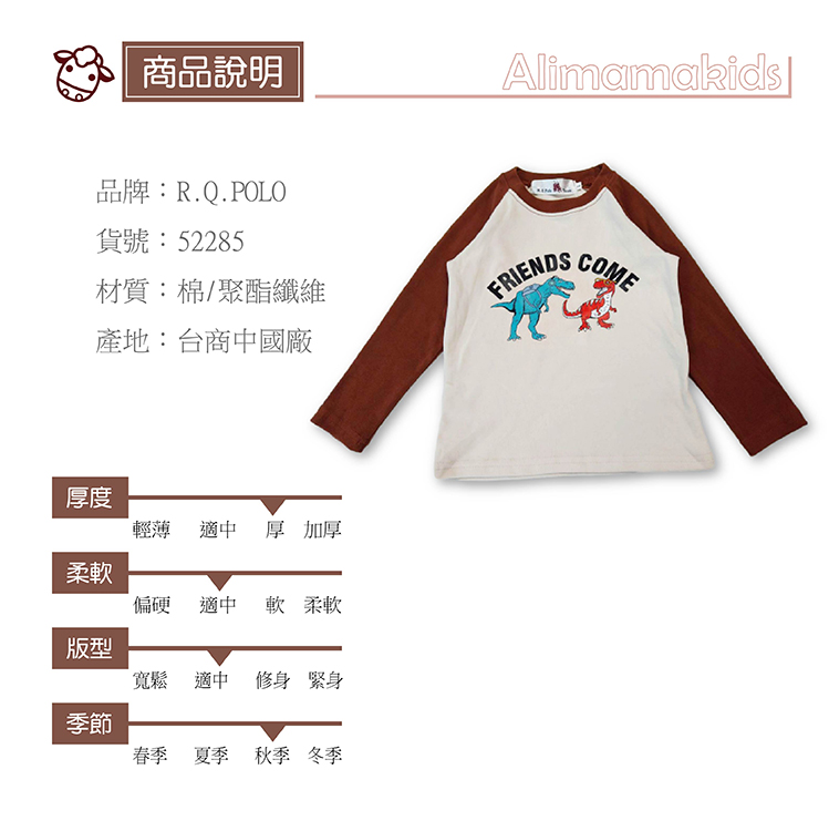 小男童長袖 恐龍圖案T恤 [52285] RQ POLO 德絨 秋冬童裝 5-17碼 保暖衣 入冬首選 暴龍霸王龍