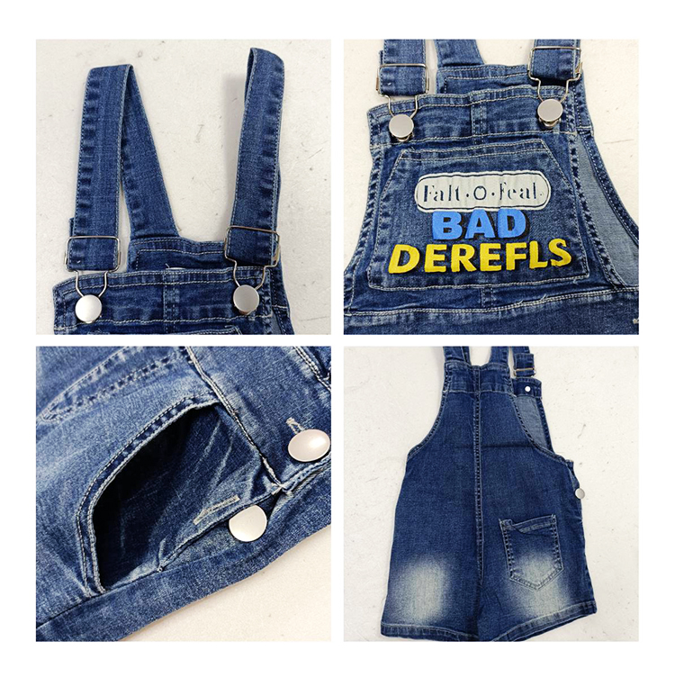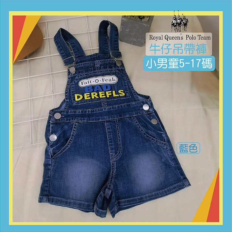 超帥氣的牛仔吊帶褲,胸前印刷字母圖案,有一個小口袋,
