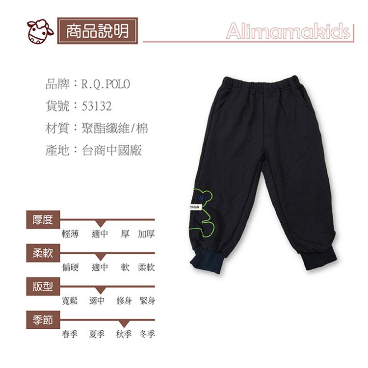 RQ POLO 小男童 薄款 小熊刺繡休閒長褲
