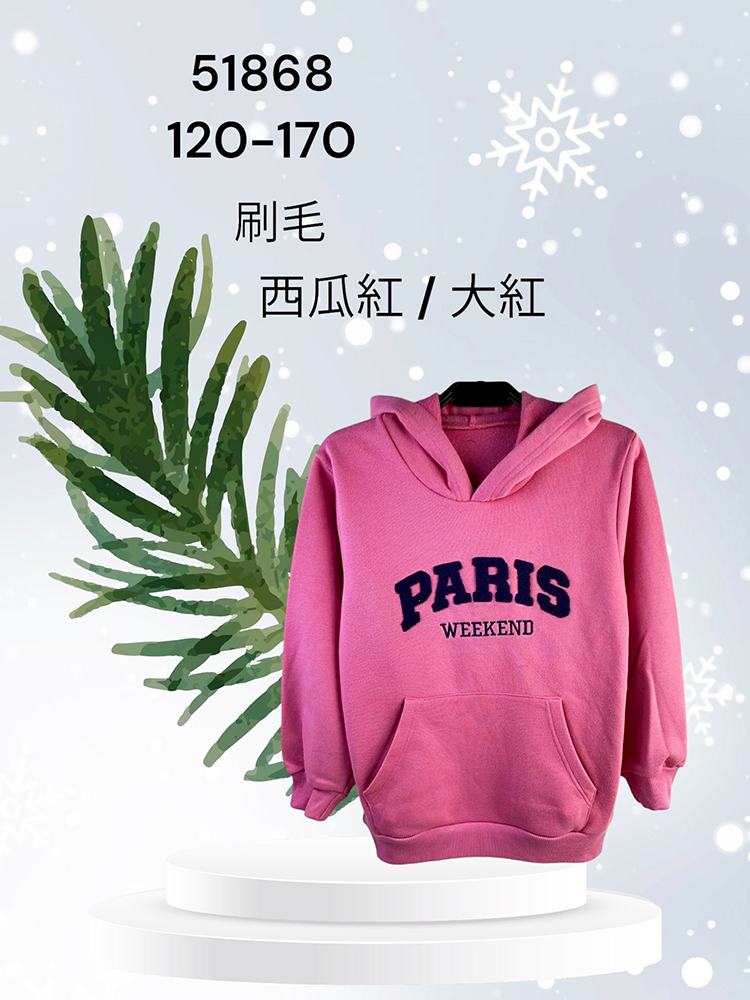 RQ POLO 中大童毛線刺繡字母長袖鋪棉連帽上衣