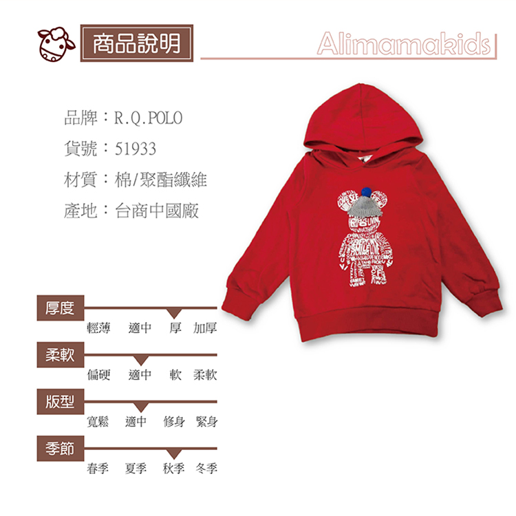 鋪棉*韓版兒童秋冬長袖 熊熊連帽T恤 5-17碼 [51933] RQ POLO 秋冬童裝 聖誕 耶誕服飾 小男童 帽T