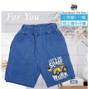 小男童 挖土機雙口袋鬆緊牛仔褲 淺藍 休閒褲 5-17碼 [50222] RQ POLO 春夏童裝 梭織短褲 短褲 工程車