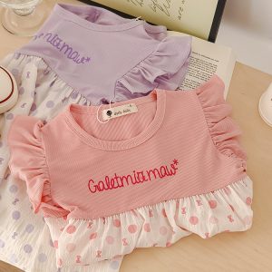 小女童 圓點短洋裝 長版上衣 5-17碼 [96865] RQ POLO 小童 春夏童裝 蝴蝶結 布料柔軟連身裙 荷葉袖