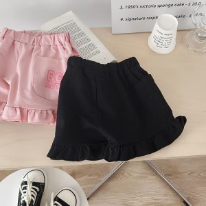 小女童 可愛字母雙口袋棉質短褲 5-17碼 [96883] RQ POLO 春夏童裝 荷葉邊運動褲 棉褲 棉短褲 休閒褲