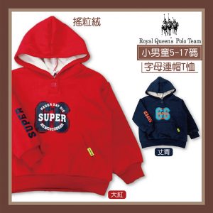刷毛*小男童 字母連帽上衣帽T 5-17碼 搖粒絨 [585041] R.Q. POLO 小童 秋冬童裝 T恤 保暖 過年戰服 韓版 不倒絨