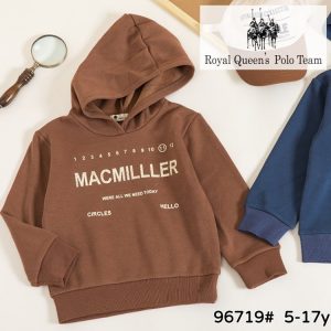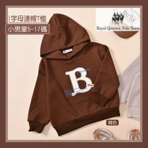 小男童 字母連帽T恤上衣 咖色 5-17碼 [96673] R.Q. POLO 小童 秋冬童裝 韓版 熱銷款 潮T