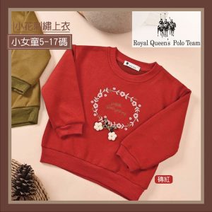 小女童 小花刺繡圓領上衣 磚紅 長袖T恤 5-17碼 [96593] RQ POLO 小童 秋冬童裝 質感好材質舒適