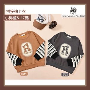 小男童 拼接袖帥氣字母上衣 T恤 5-17碼 [96677] R.Q. POLO 小童 秋冬童裝 韓版 熱銷款 潮T