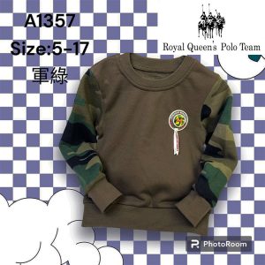 小男童 迷彩微刷毛長袖T恤 圓領 [A1357] RQ POLO 小童 秋冬童裝 5-17碼 熱銷款 兄弟裝 軍裝風 不倒絨