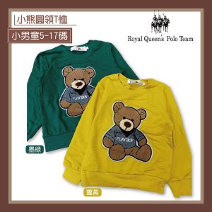 小男童 毛線小熊圖案 長袖T恤 圓領 [A1358] RQ POLO 小童 薄款 秋冬童裝 5-17碼 聖誕綠 耶誕熊熊