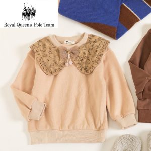 刷毛*小女童 蝴蝶結上衣 卡其 5-17碼 [96734] R.Q. POLO 小童 秋冬童裝 荷葉領 T恤 清新熱銷款 不倒絨