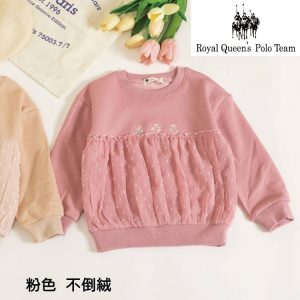 刷毛*小女童 浪漫網紗上衣 粉色 5-17碼 [96735] R.Q. POLO 小童 秋冬童裝 圓領T恤 清新熱銷款 不倒絨