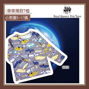小男童 車車滿版薄長袖T恤 灰色 圓領 [A1273] RQ POLO 小童 秋冬童裝 5-17碼 台灣現貨 跑車老爺車