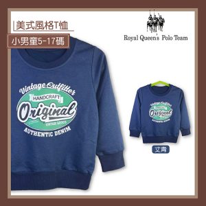 小男童 美式字母風格 長袖T恤 丈青色 圓領 [A1726] RQ POLO 小童 薄款 秋冬童裝 5-17碼 熱銷