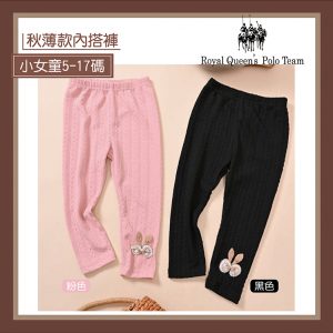 [台灣現貨] 小女童長褲 緹花薄款內搭褲 兔兔圖案 [96653] R.Q. POLO 秋冬童裝 小兔子 5-17碼