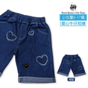 小女童 愛心拼布反摺牛仔短褲 5-17碼 [A0707] RQ POLO 兒童 春夏童裝 現貨 牛仔褲 軟布 熱銷百搭款