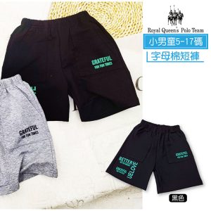 小男童 字母雙口袋棉質短褲 黑色 5-17碼 [16929] RQ POLO 春夏童裝 現貨 五分褲 運動褲 棉褲