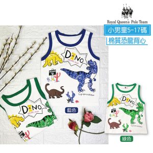 小男童 恐龍竹節棉無袖背心 5-17碼 [96470] RQ POLO 小童 春夏童裝 短袖上衣 霸王龍 暴龍 在台現貨