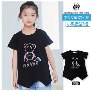 中大女童 小熊造型圓領棉短袖 黑色 棉T 120-165碼 [181016] RQ POLO 中大童 春夏童裝 現貨熊熊