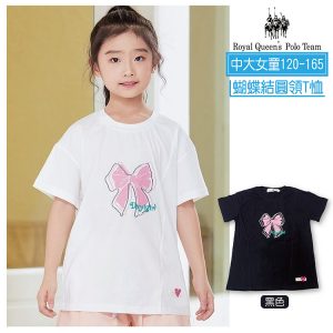 中大女童 蝴蝶結圓領棉短袖 黑色 棉T 120-165碼 [181096] RQ POLO 中大童 春夏童裝 現貨