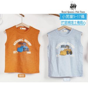 小男童 堆土機竹節棉無袖背心 5-17碼 [96475] RQ POLO 小童 春夏童裝 短袖上衣 工程車 挖土機 現貨