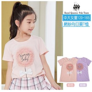 中大女童 網紗向日葵圓領棉短袖 棉T 120-165碼 [181029] RQ POLO 中大童 春夏童裝 現貨 棉T恤