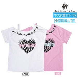 中大女童 小露肩 愛心圓領棉短袖 棉T 120-165碼 [181078]RQ POLO 中大童 春夏童裝 現貨 棉T恤