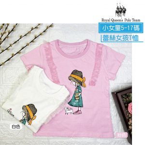 小女童 蕾絲女孩短袖圓領T恤 5-17碼 [A0780] RQ POLO 小童 春夏童裝 短袖上衣 百搭款