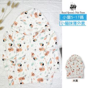 小童 小貓咪氣球 米黃色 連帽 薄外套 防蚊遮陽外套 5-17碼[A0825]RQ POLO 小女童 小男童 春夏童裝