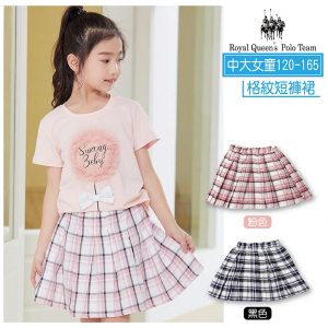 中大女童 休閒格紋褲裙 120-165碼 [184014] RQ POLO 兒童 春夏童裝 短褲 王心凌款 學院風百褶裙