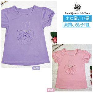 小女童 亮鑽小兔子蝴蝶結短袖圓領T恤 5-17碼 [A0225] RQ POLO 小童 春夏童裝 短袖上衣 荷葉袖 現貨