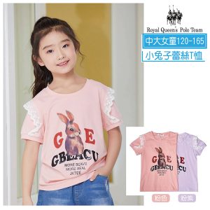中大女童 小兔子蕾絲圓領棉短袖 棉T 120-165碼 [181010] RQ POLO 中大童 春夏童裝 現貨 棉T恤