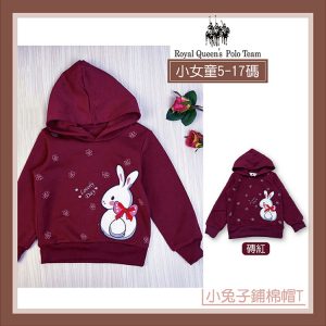 小女童長袖 小兔子鋪棉上衣 帽T T恤 磚紅色 [31159] RQ POLO 秋冬童裝 5-17碼 兔兔 連帽 聖誕 過年