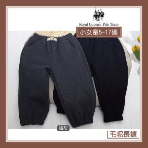 小女童長褲 毛呢縮口長褲 兔兔布標圖案 鐵灰色 [65652] R.Q. POLO 秋冬童裝 小童 5-17碼 厚款